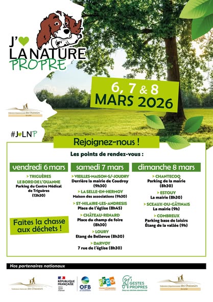 Les 6, 7 et 8 mars prochains, toutes les fédérations départementales organiseront l’opération « J’aime la nature propre ».